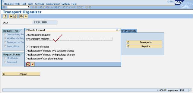 Step6. Again from tcode- SE09 click on the create button.