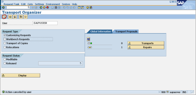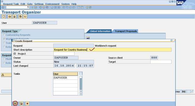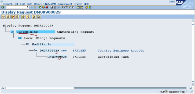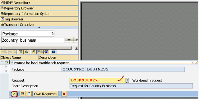 Step9. So we have a customizing request.