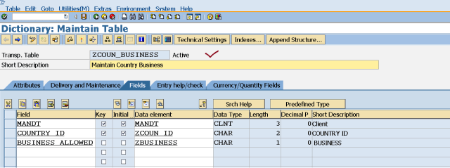 Step18. Maintain the three fields and activate the table.