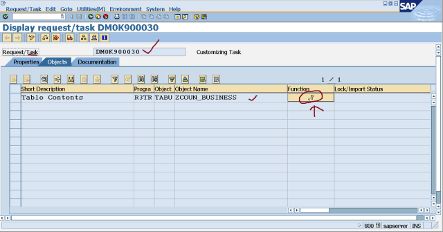 Step26. Go to SE09 and select the task under the customizing request. Double click on the task.