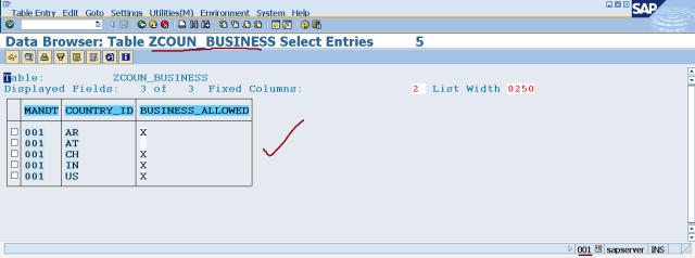 Step40. Now check in SM30 again in client 001. So here we have the records.