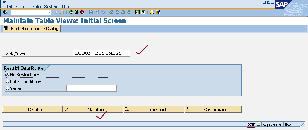 Step21. Go to SM30 and maintain some table records.