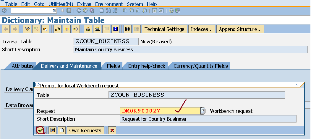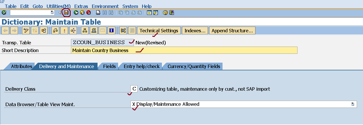 Step14. Go to SE11 and create a customizing table.