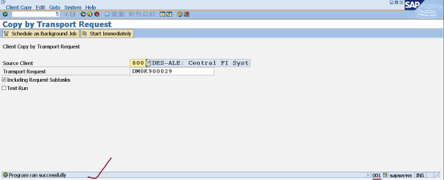 Step34. Go to Tcode- SCC1 in 001 client.Choose Source client as 800 and click on the F4 options against Transport request option.
