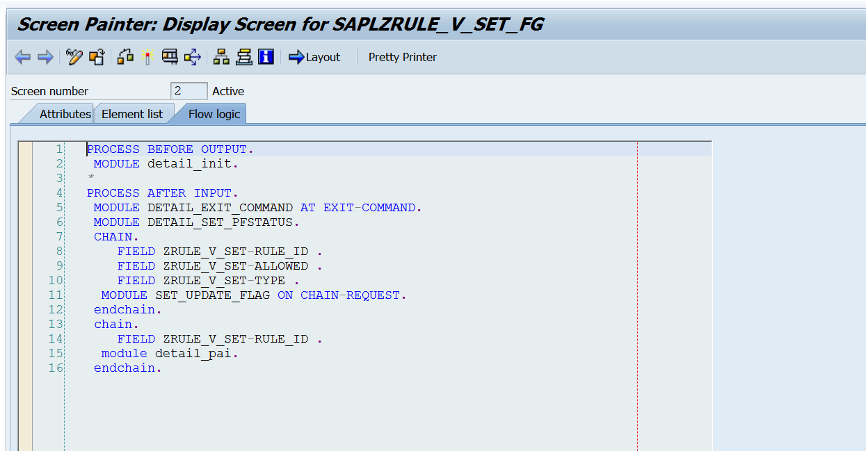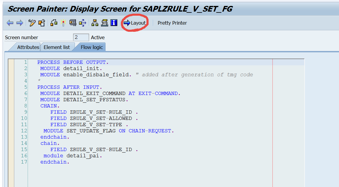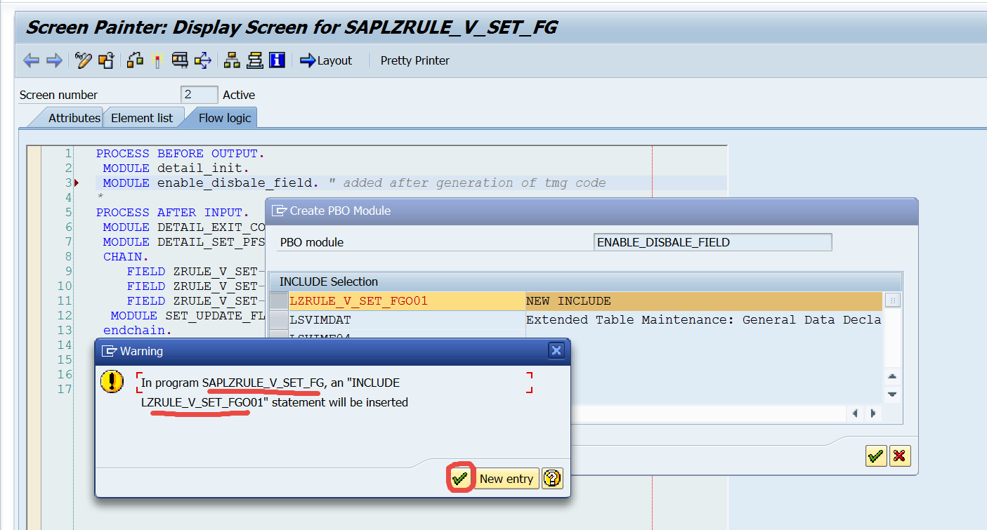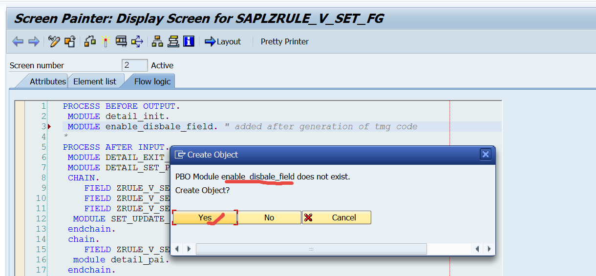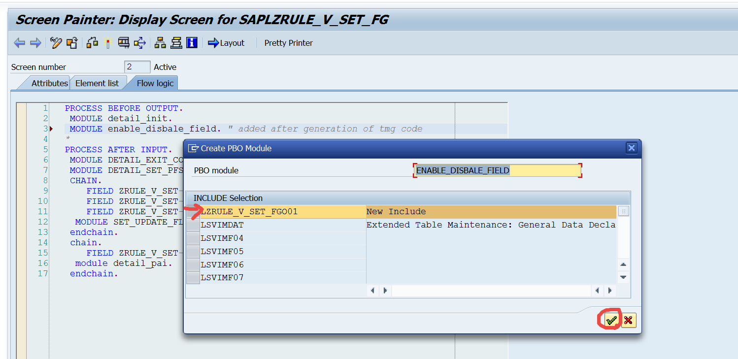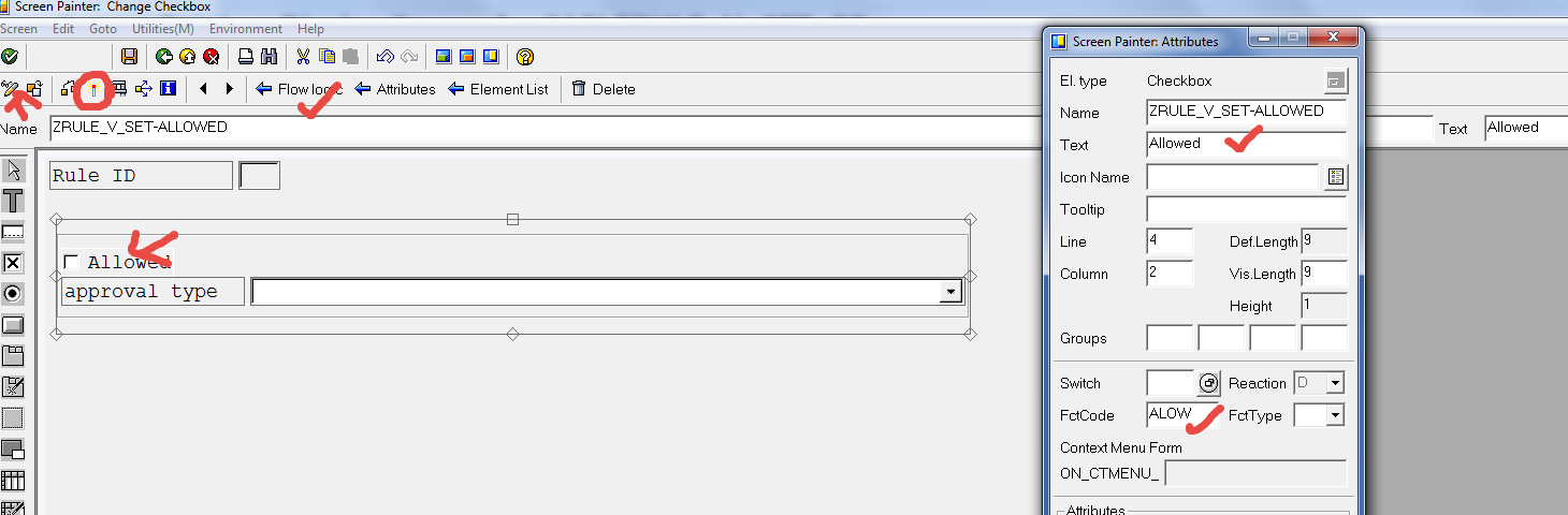 Step14. Click on change mode. Double click on the check box, provide the text and function code. Activate and lastly click on Flow Logic button.