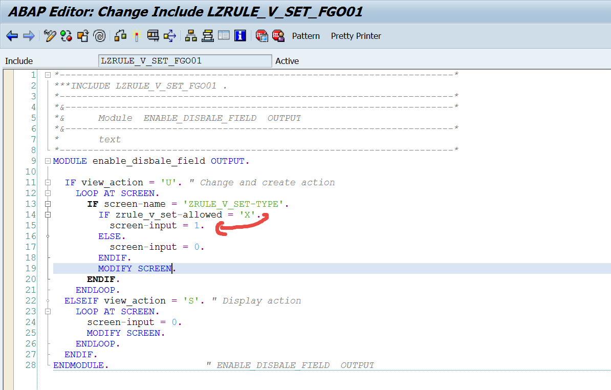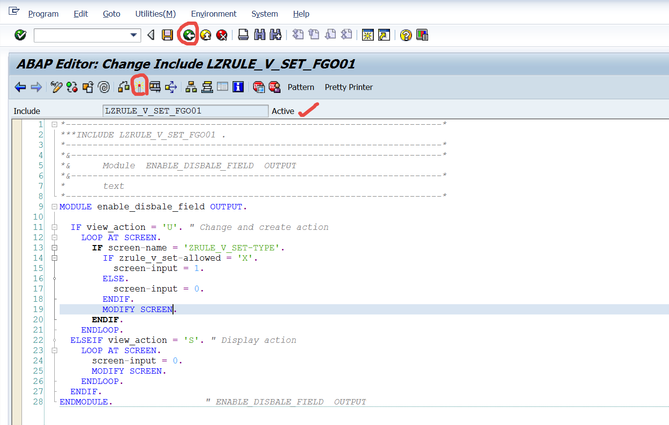Step15. Now click on edit button. Add a new module in the PBO. Go on display mode.