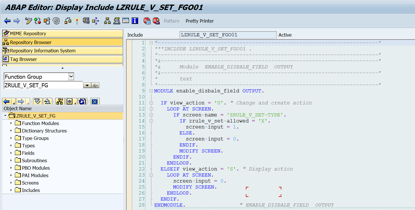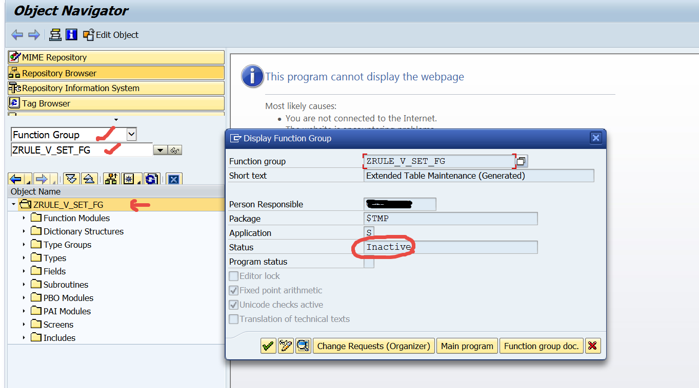 Step23. Go to Tx- SE80 and open the function group. Double click on the function group name and its status is inactive.