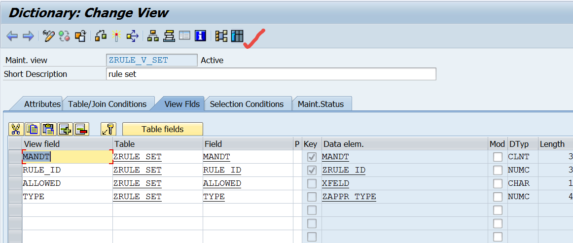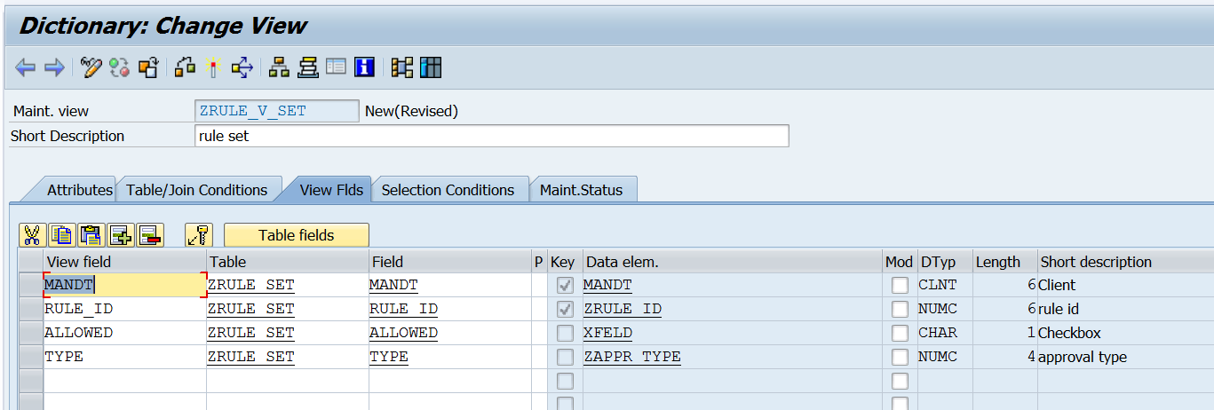 Step4. Add all the fields and generate the TMG of the maintenance view.