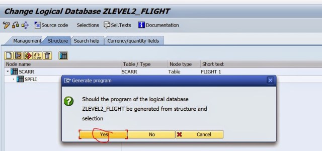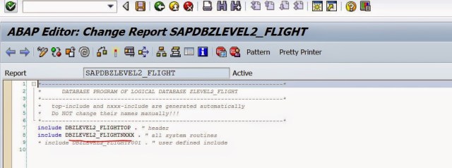 Step22. Create a report in SE38 and assign the above created LDB to the report.