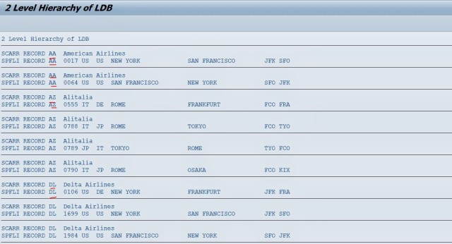 Step1. The two tables SCARR & SPFLI are dependent. based on the CARRID value let’s get the records from SCARR table and based on the records from SCARR get all the dependent records from SPFLI table.