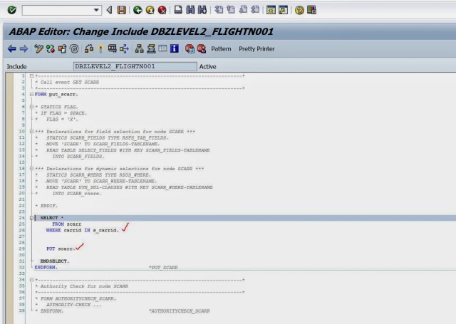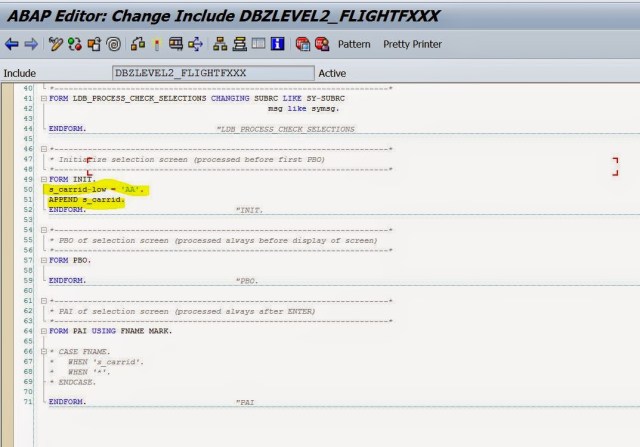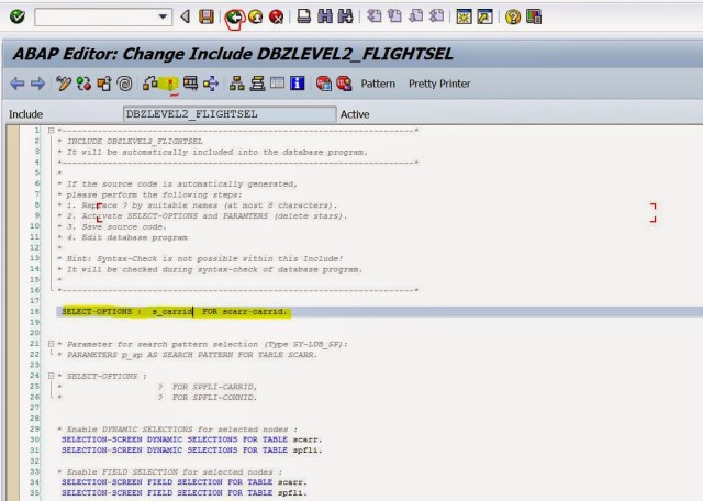 Step12. Change the commented code as per requirement and provide a select-options name S_CARRID . activate it and go back.