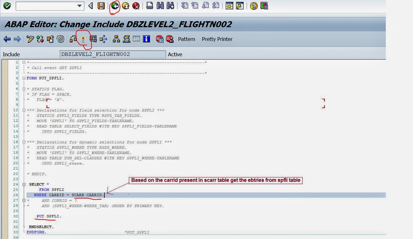 Step1. The two tables SCARR & SPFLI are dependent. based on the CARRID value let’s get the records from SCARR table and based on the records from SCARR get all the dependent records from SPFLI table.