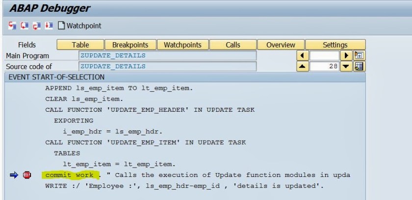 CALL FUNCTION ‘UPDATE_EMP_ITEM’ IN UPDATE TASK