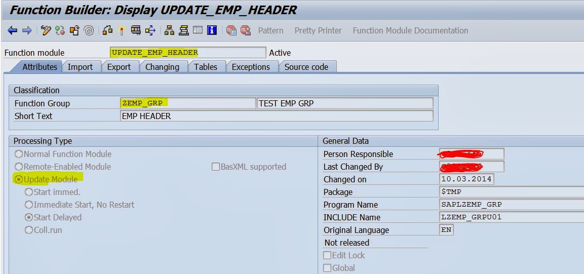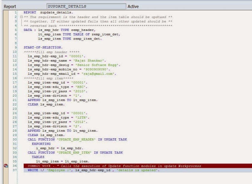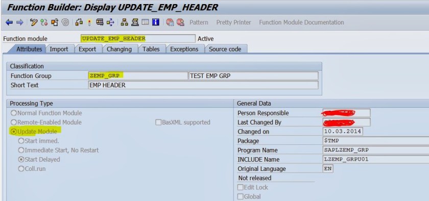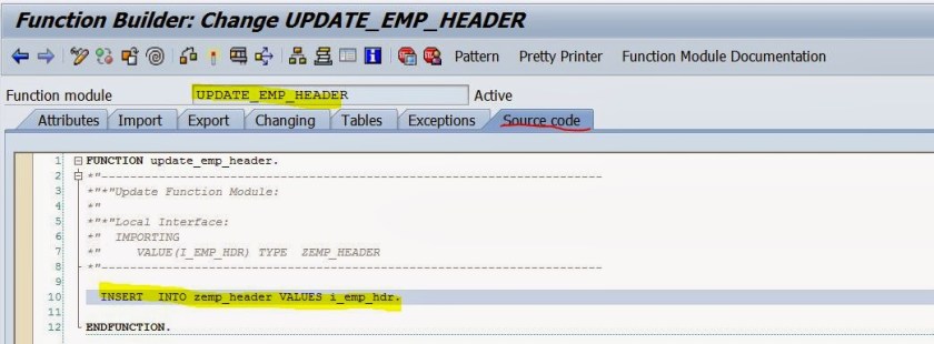 CALL FUNCTION ‘UPDATE_EMP_HEADER’ IN UPDATE TASK