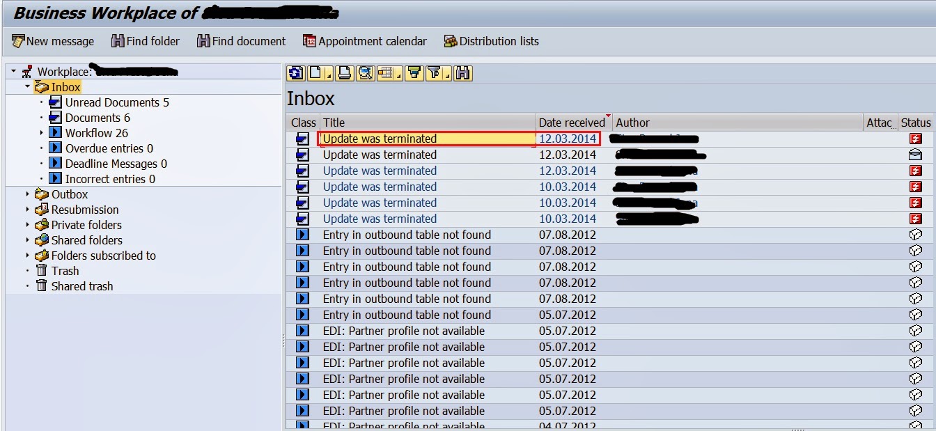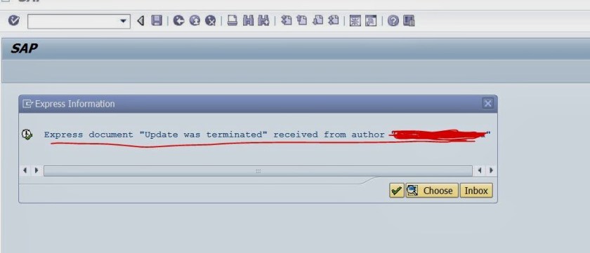 Step50. The below screen appears saying that UPDATE FM Termination. Click on the INBOX button.