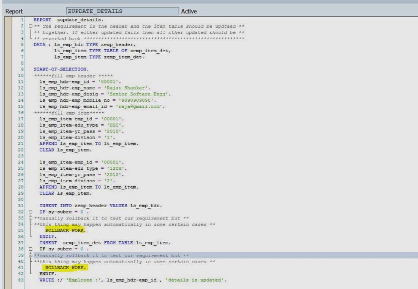 Step8. Slightly change the report. Put a rollback statement for the ITEM table update. This rollback we are doing manually to test our scenario but it might happen automatically . Execute the report.