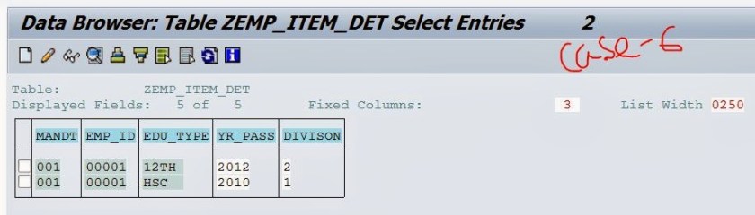 Before testing the CASE-6 delete all entries from the two data base tables, so that no need to change the data in the program.