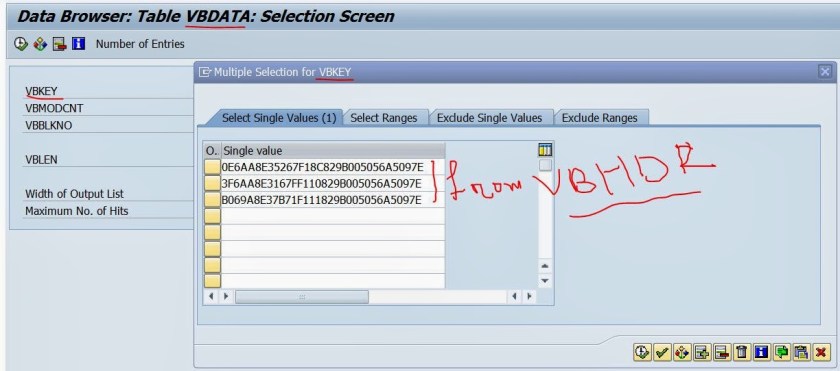 Step43. Go to VBDATA table and provide VBKEY values that we obtain from VBHDR or  from VBMOD table.