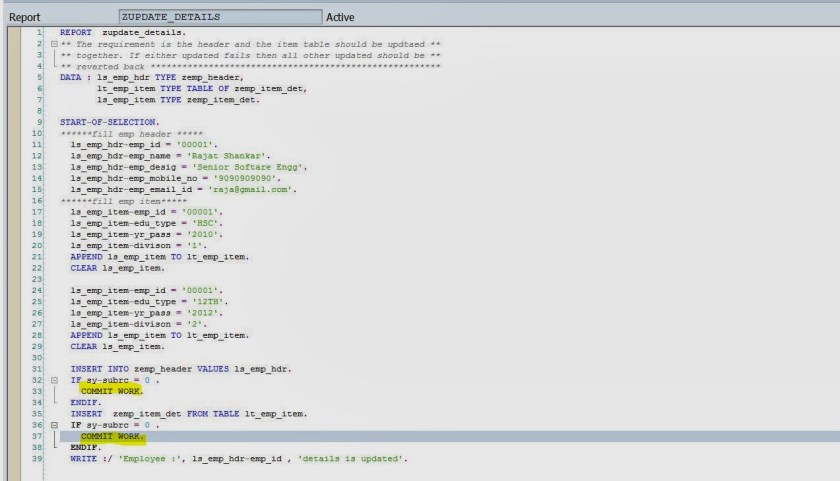Or we can slightly change the report, so that we have COMMIT  WORK statement for every database update statements to explicitly.