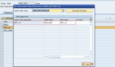 Step 9. See the mapping of the Search help parameter of the Search help to the field of the table. Click on the COPY Button.