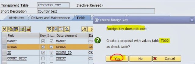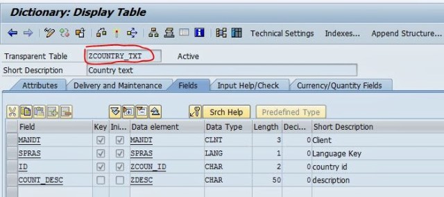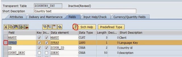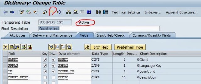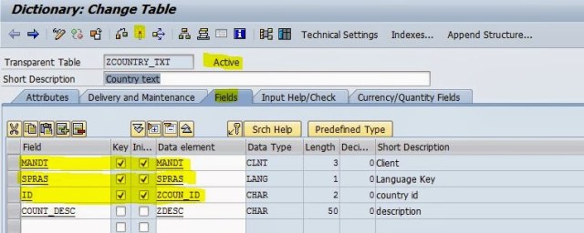 Step12. Maintain the key fields properly with the SPRAS(language) field and activate the table.