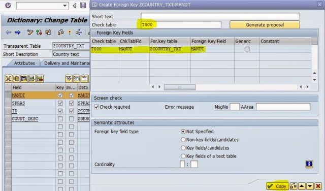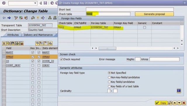 Select the Foreign key field type as KEY FIELDS OF A TEXT TABLE. Provide cardinality as 1:N and at last click on COPY button.