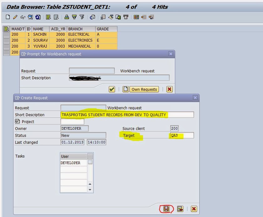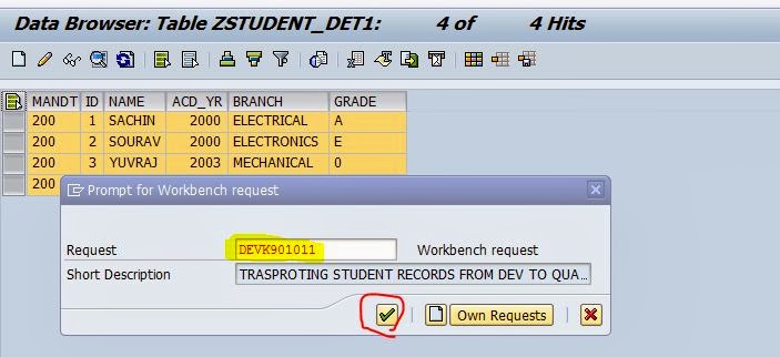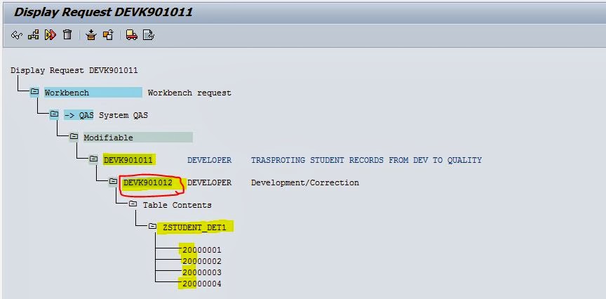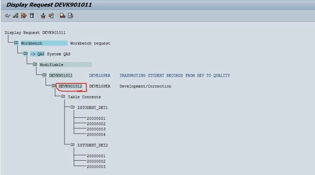 Step14. Now the records are added to the request to be transported to the Quality system.