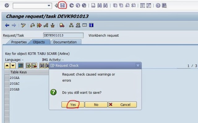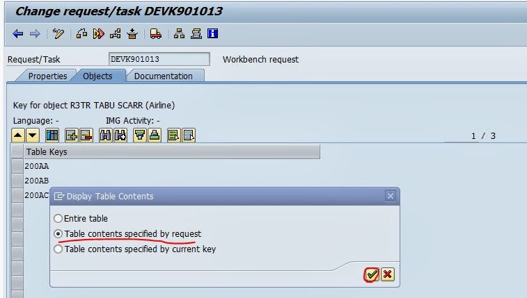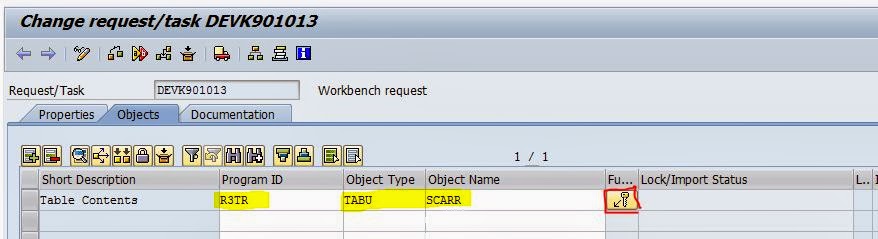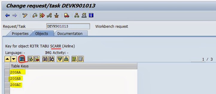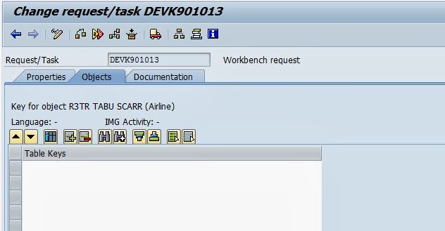 Step8. Provide the details like: ProgramID: R3TR, Object type- TABU and Object name: SCARR(here we are transporting data from scarr table) and click on the key button.