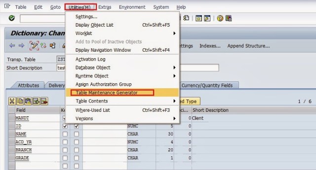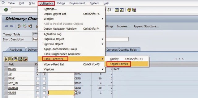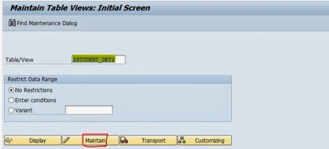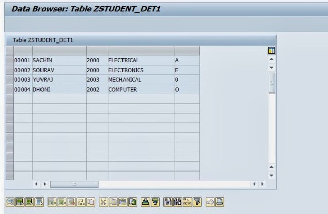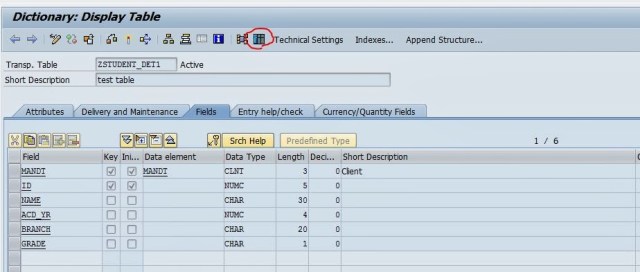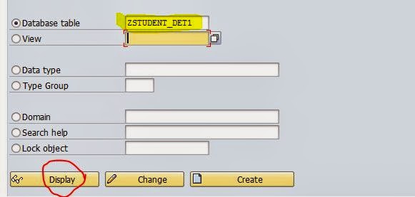 Step2. Provide the table name name ‘ZSTUDENT_DET1’ and click on display button.