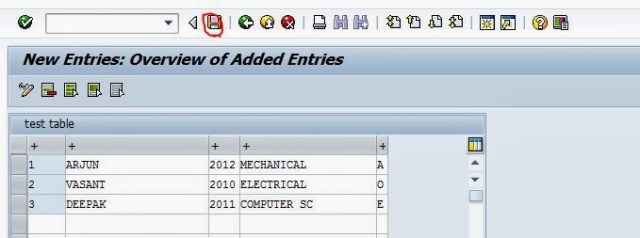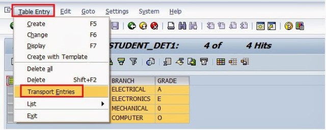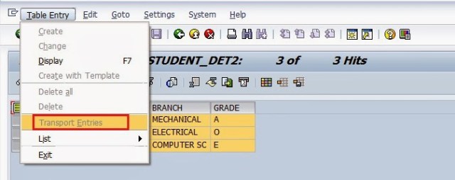 Step9. Select the records & from the menu Table Entry the TRANSPORT ENTRIES button is deactivated as there is a TMG created for the table.