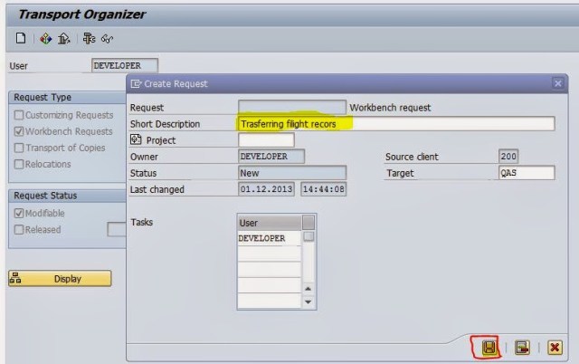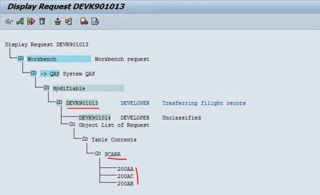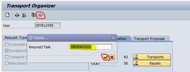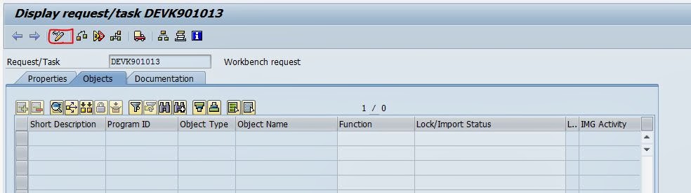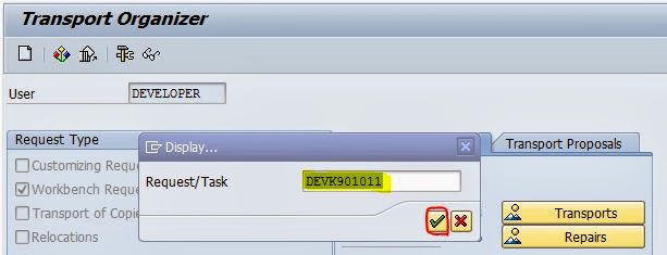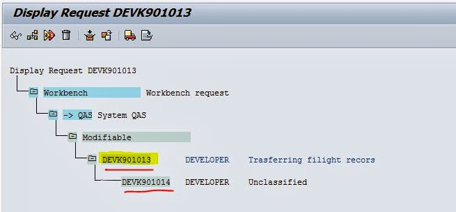 Step15. Go to SE09 and display the request and double click on the Task under the request.