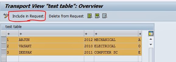 Business Scenario: Need to transport some table records from development system to the Test System. Here three cases are considered. Case 1. If there is no TMG for the table, how to transport the records. Case 2. In there is a TMG for the table is present then how to transport the records. Case 3. Directly from SE09 adding the records to the workbench request.