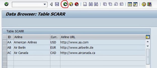 Step10. Provide the client (200) and the key field value of the table SCARR and then clcik on the contents button.