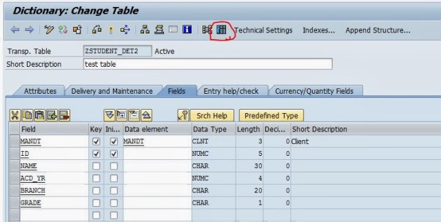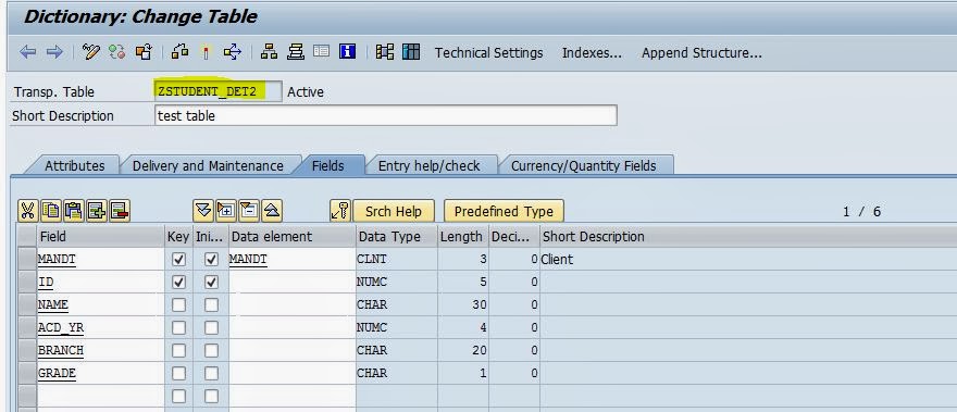 Step1. The table ZSTUDENT_DET2 is created with following fields and activated.