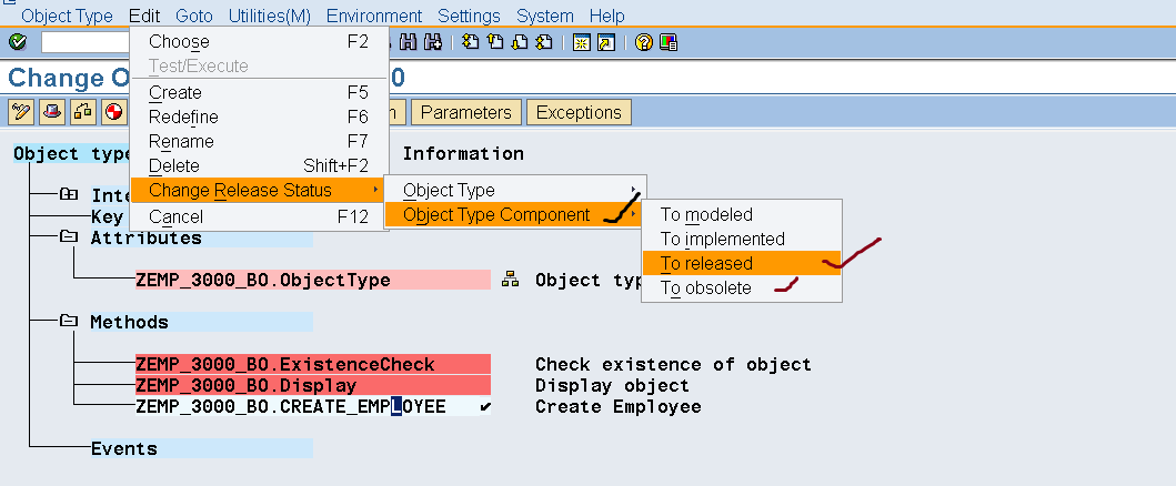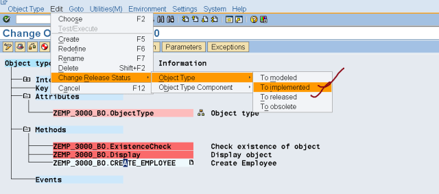 Step20. Navigate along the menu path and Implement the Business Object and then Release the business object.