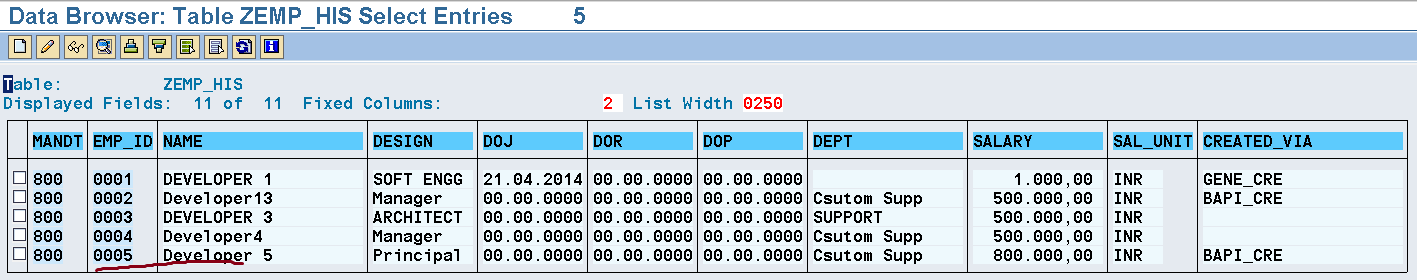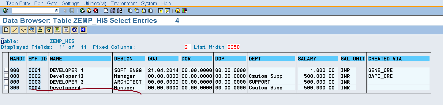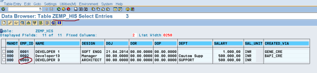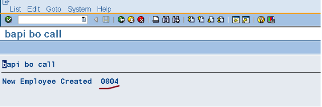 Step41. After executing the program one more Employee ‘0004’ is created successfully by BO program.