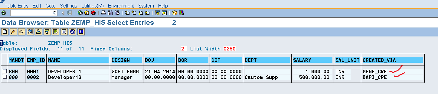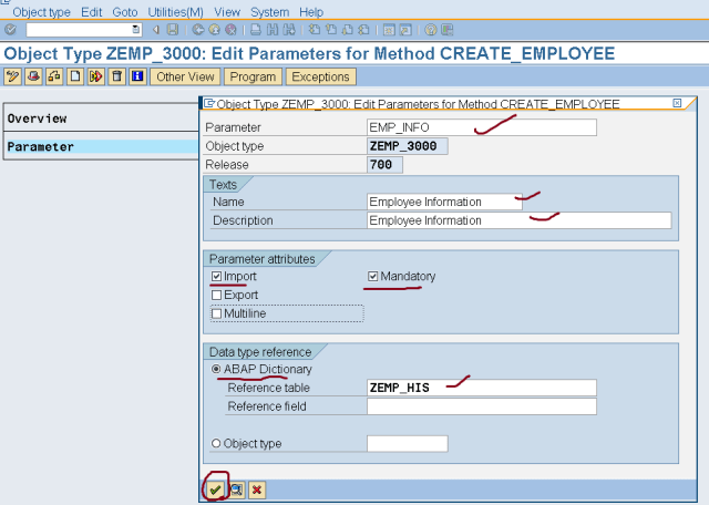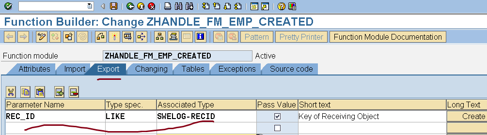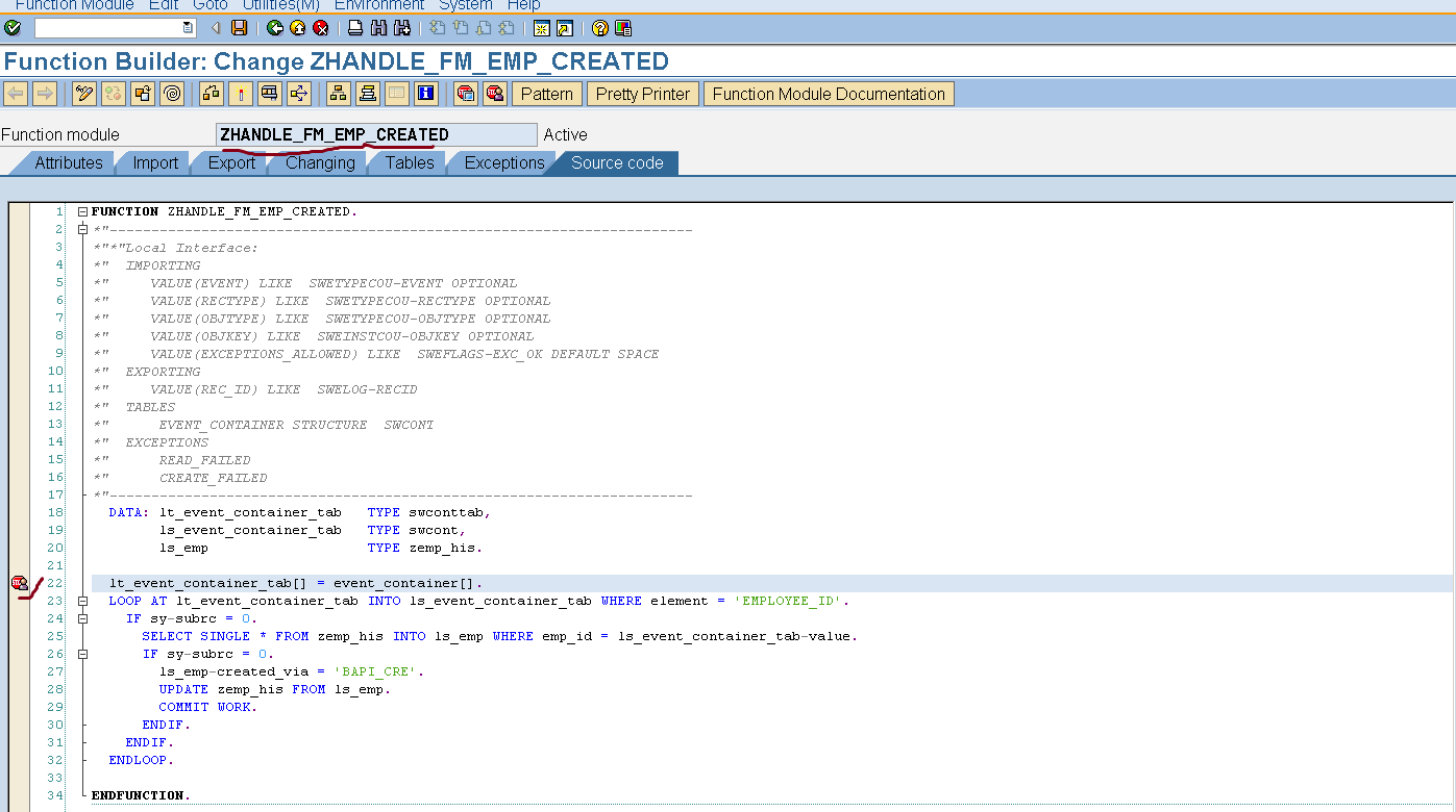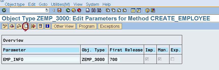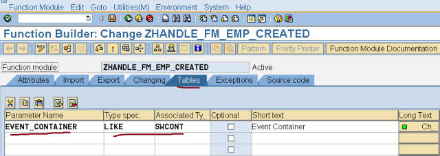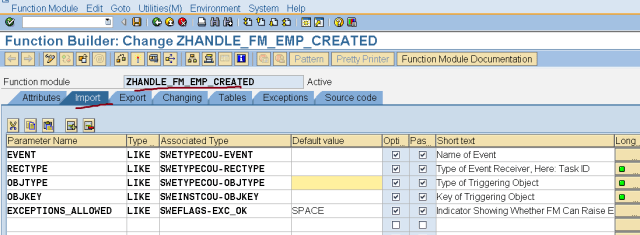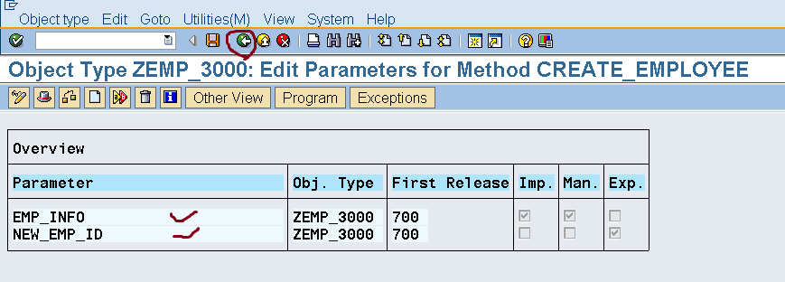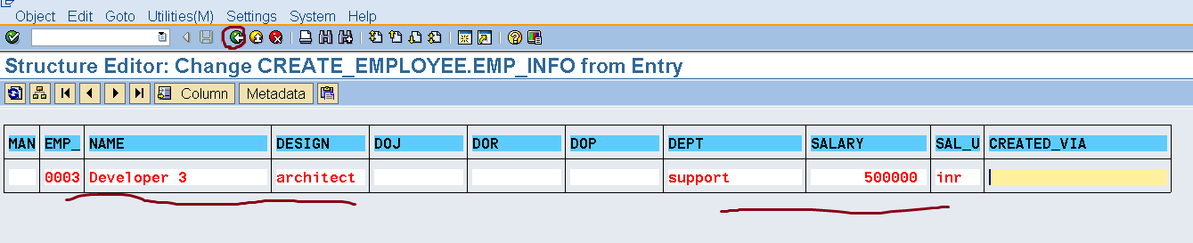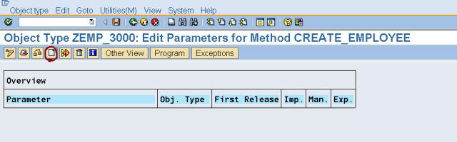 Step12. The method needs the details of the Employee to create it except the Information about field : CREATED_VIA bcoz this field should be filled in the Event handler Function module.