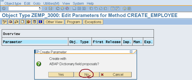 Step4. Go to Tx: SWO1 & create a Business Object- ZEMP_3000.