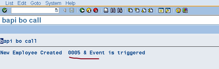 Scenario: Usually when a BAPI method is called and some Business Object is created/changed like Ex- if New Employee is created or changed the status should reflect in some other SAP system or Non SAP system. So this can be achieved by Event technique of the Business Object and when a event is triggered either the registered function module or Method is called to send the status back to the receiver system.