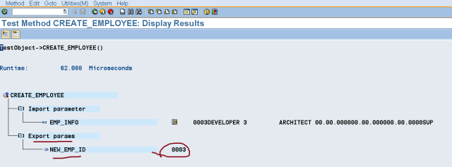 Step37. We receive the employee id ‘0003’ as export parameter.