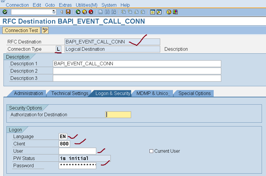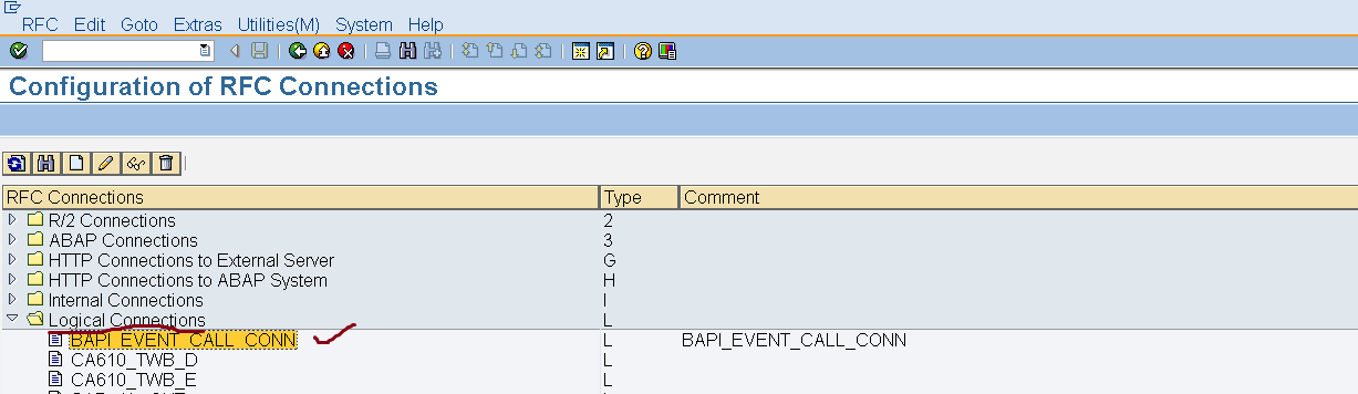 Step47. As this FM is a Remote Enable, we need to create a RFC destination which we need in our later customizing setting. Here as this event triggers a FM in the same system it doesn’t make much sense to have this RFC but in a real time environment it may require we need to pass the information to a different system.