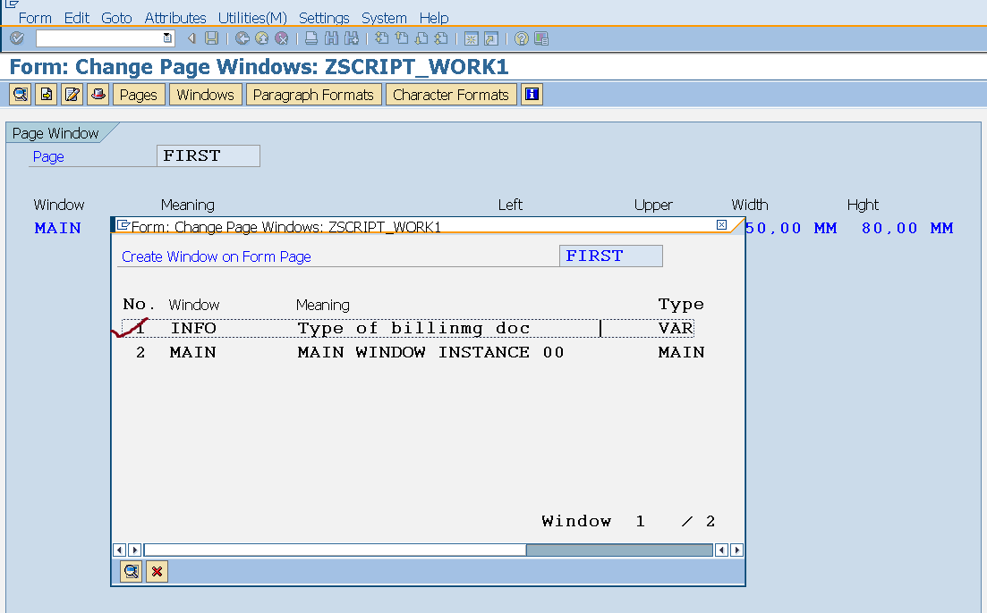 Step7 . So one more window INFO of VAR type is added. Go to Page Windows tab.