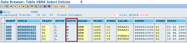 Step17. Run the Program with different billing doc and with different vbtyp.
