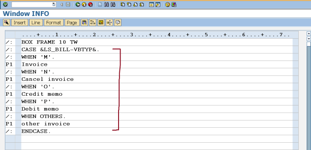Step1. Here we have the sap script output of same form for two different billing document. In the highlighted we can observe that depending upon the different billing type , the text appears as INVOICE or DEBIT MEMO or some thing else. This decision is controlled within the script by the uses of some conditional statements like if..else or switch case.