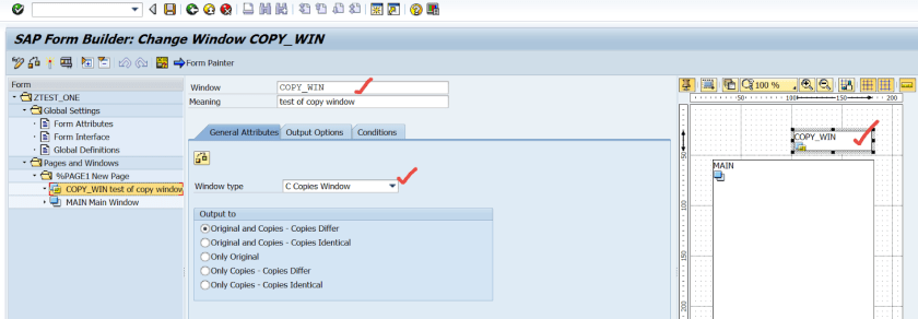 Step6. Change the window name, meaning and window type – choose copy window. With the Form painter position the Copy Window at proper place.