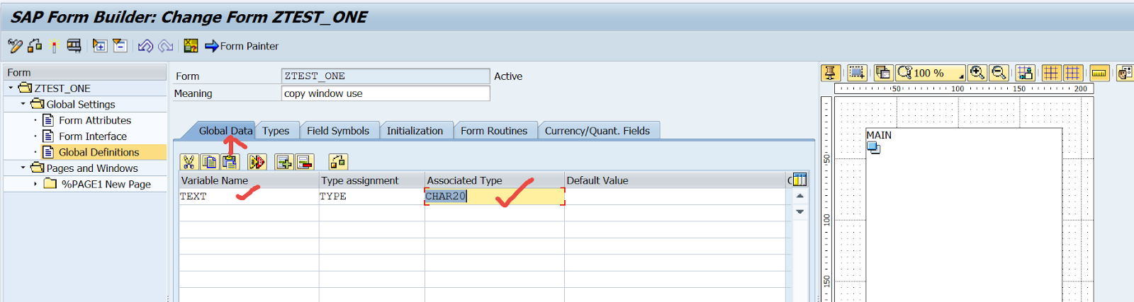 Step2. Go to Tx- SMARTFORMS and create a smartform and go to Global Definitions.