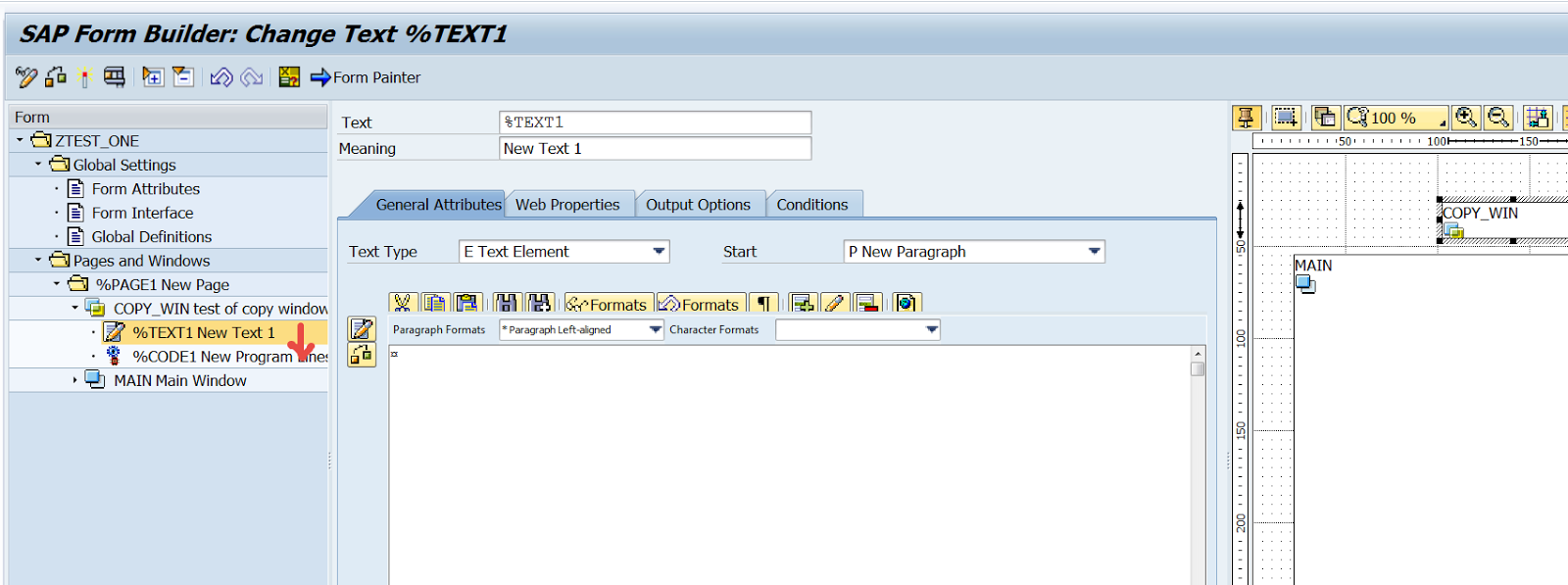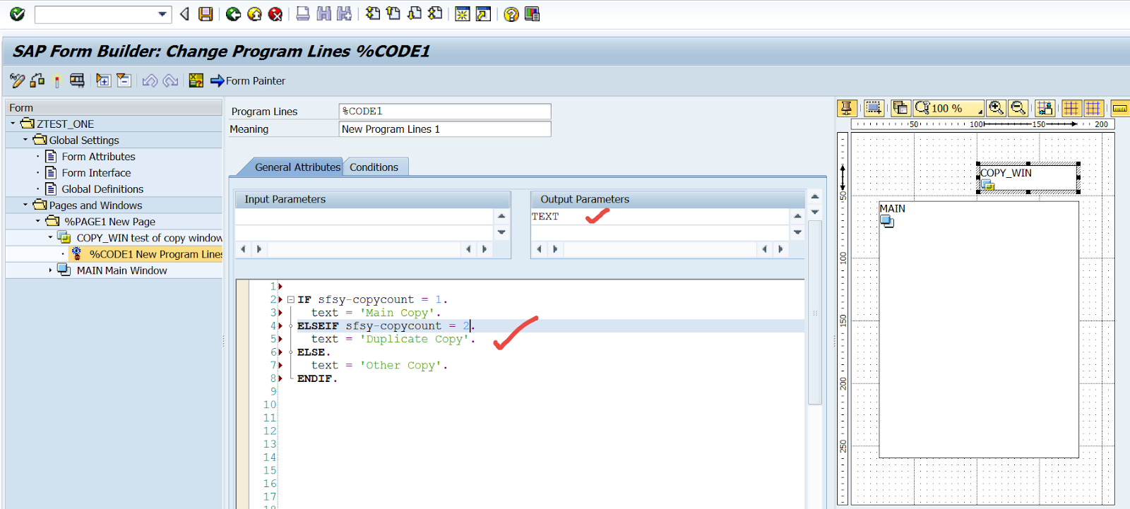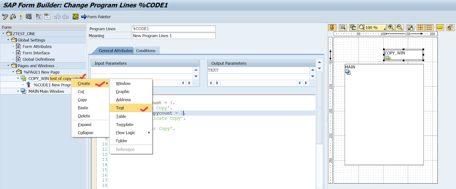 Step8. Now we are done with the copy window creation and positioning on the smartform page. Now right click on the copy window and from the shown navigation, create program lines.