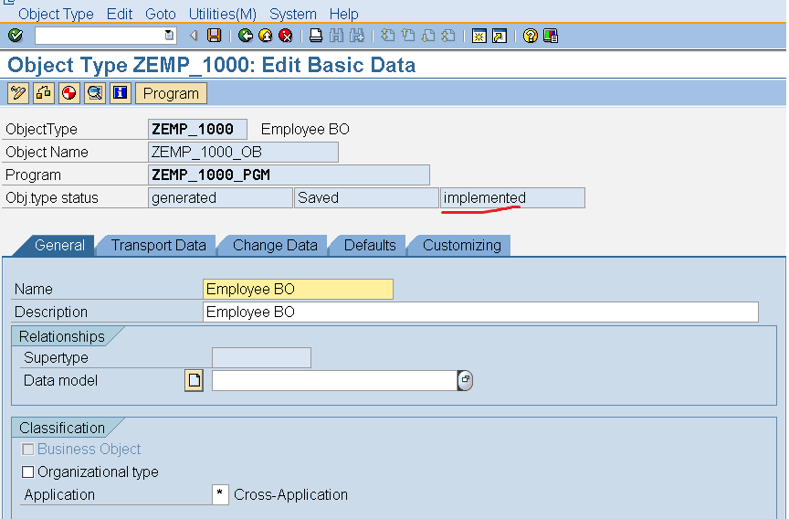 Step14. To Create the Business Object type Go to Tx- SWO1. Provide the Object name and click on Create button.