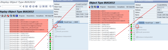 Step1. Go to Tx- SWO1 & open the BO- BUS2032 Sales order. The two methods creates the Sales Order but one without dialog mode and other is with dialog mode.