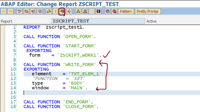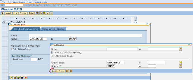 Step8. Go to SE71 tcode. Open the form , go to Page window and select the Window and click on the text element.